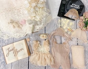 お衣装4点(①うさぎさん、②くまさん、③ドレスとヘアバンドまたは探偵とメガネ、④おくるみボンネット)