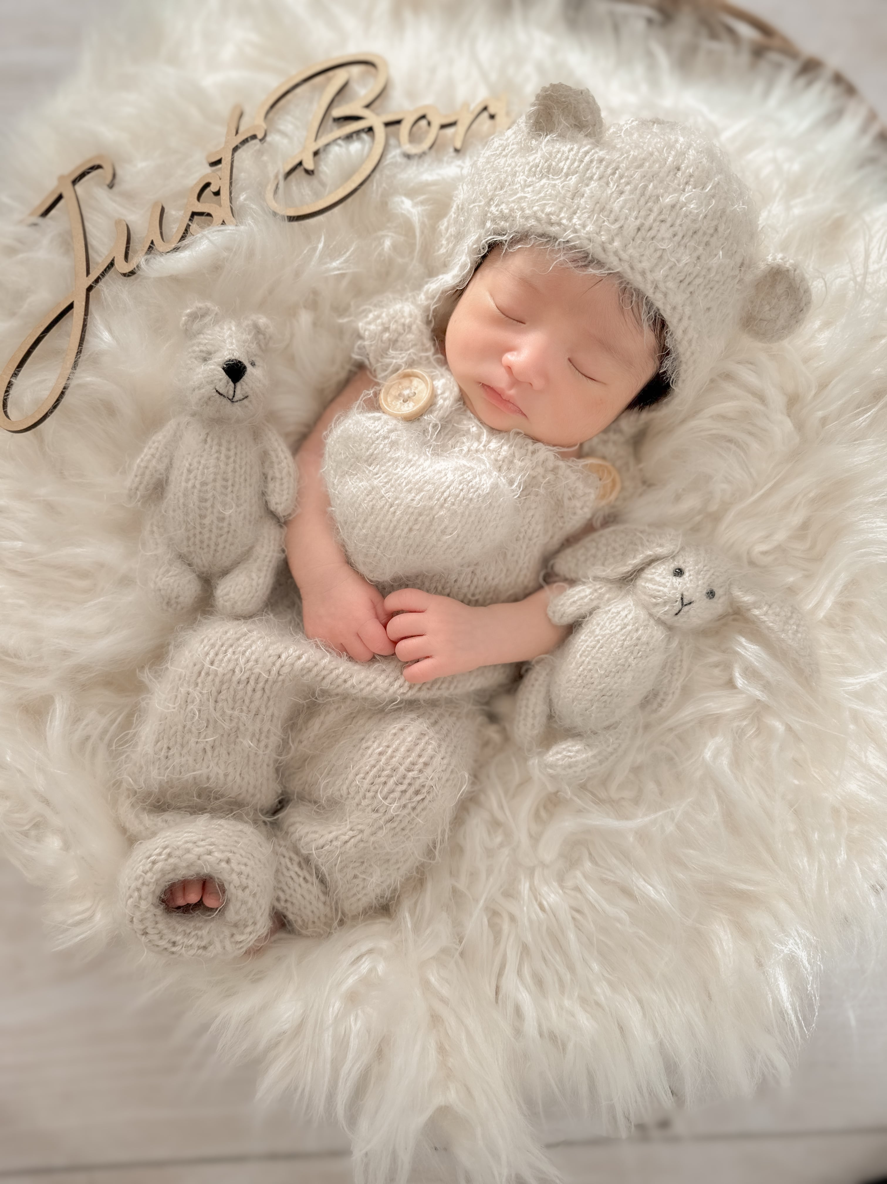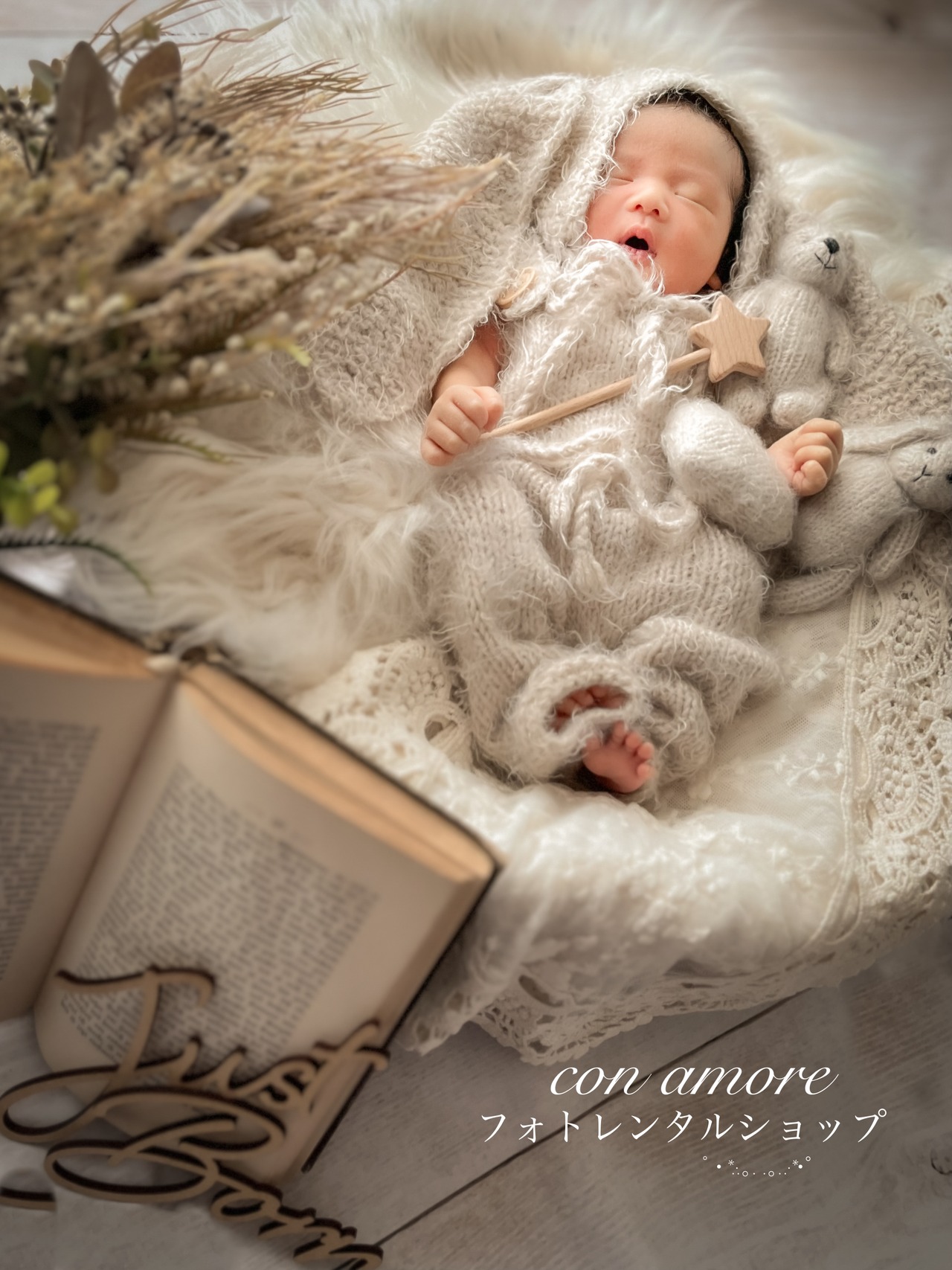 お衣装4点(①うさぎさん、②くまさん、③ドレスと花冠または小人服、④おくるみ)