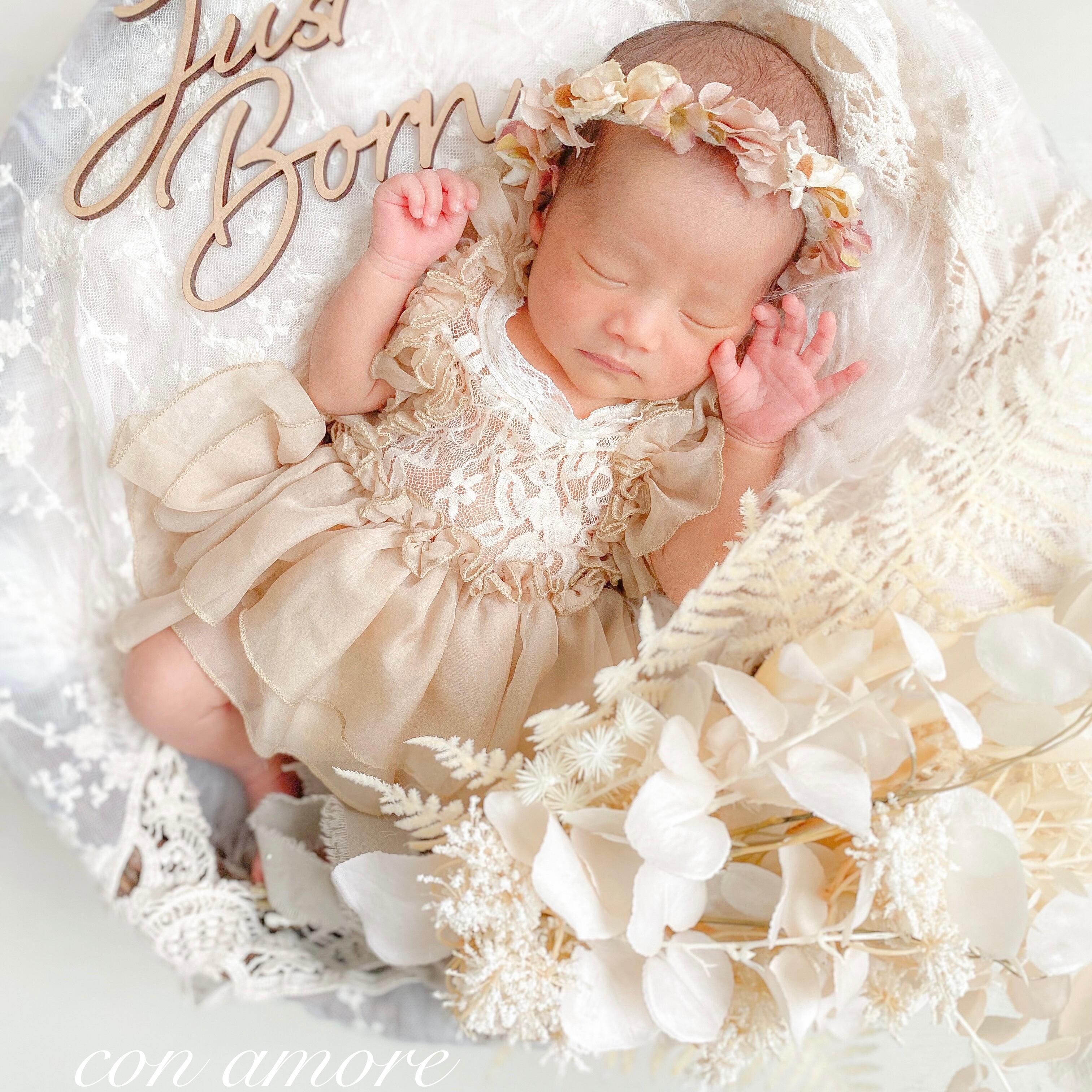 お衣装のオプションは、在庫に限りがある為、ご出産後に使用日を決める際、空きがあれば追加購入して頂く形になります。