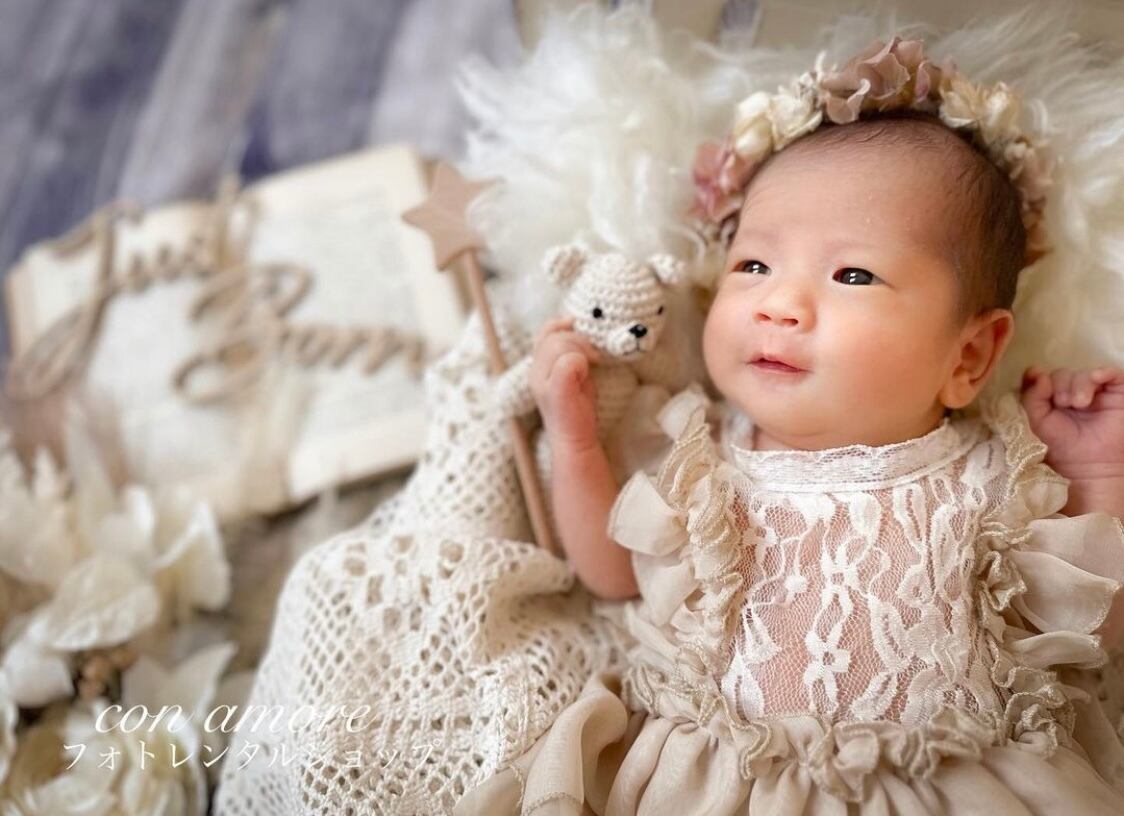 お衣装のオプションは、在庫に限りがある為、ご出産後に使用日を決める際、空きがあれば追加購入して頂く形になります。