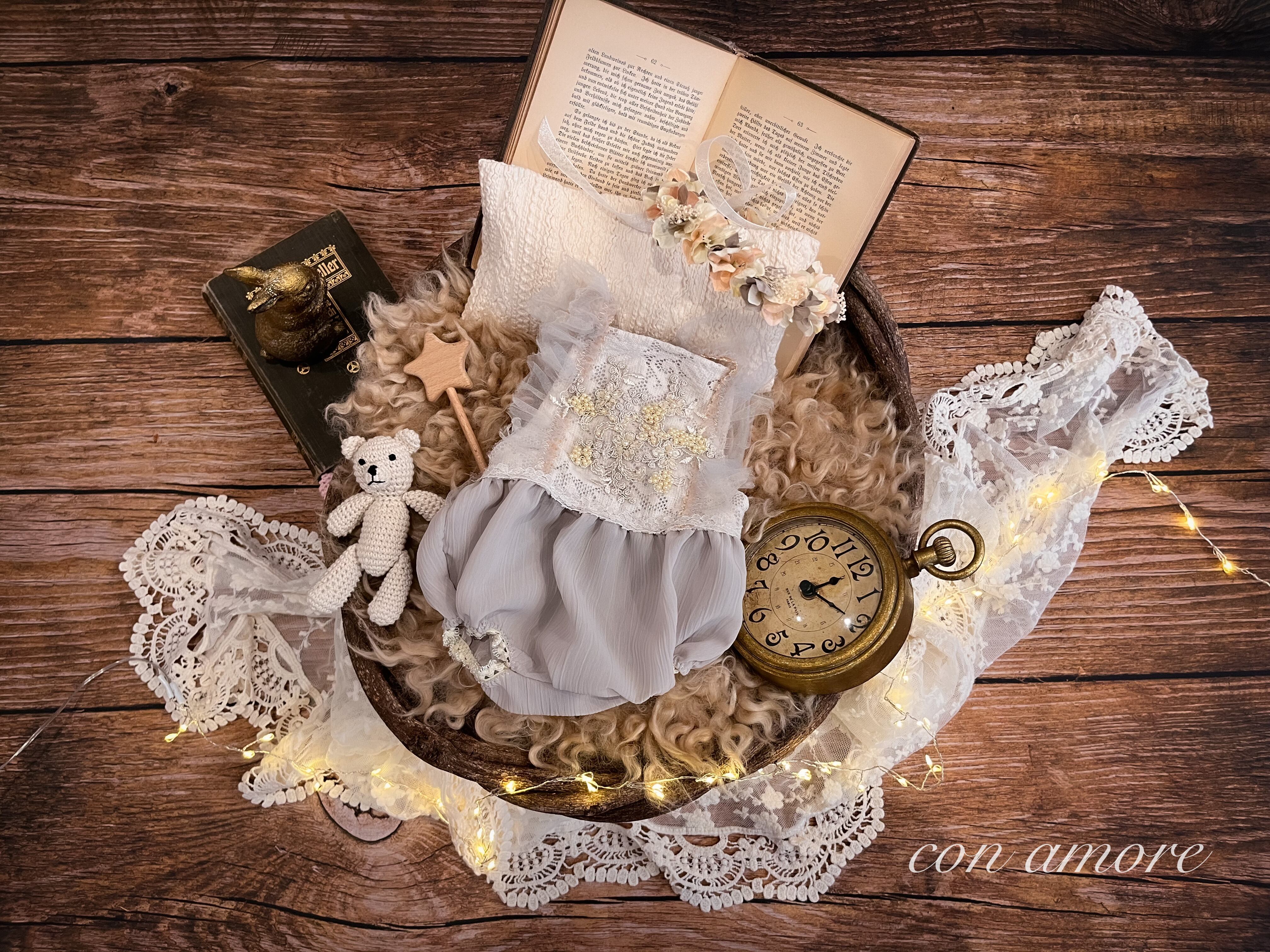 お衣装4点(①うさぎさん、②くまさん、③ドレスと花冠または探偵とメガネ、④小人服くすみピンクかベージュ)・マニュアル(撮り方コツや返送の仕方を記載)